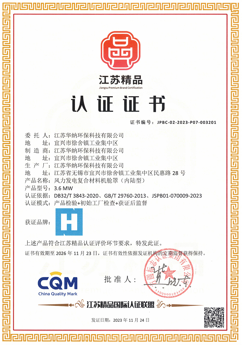 江蘇華納環(huán)保科技有限公司座落于全國環(huán)保產(chǎn)業(yè)之鄉(xiāng)-江蘇省宜興市,地處滬、寧、杭等距離的中心地帶,交通便利。注冊資本7066.66萬人民幣,公司主要是從事玻璃鋼復(fù)合材料、環(huán)保設(shè)備的設(shè)計、開發(fā)、制造、銷售于一體的科技型企業(yè),是國家高新技術(shù)企業(yè),國家專精特新小巨人企業(yè),主要產(chǎn)品風(fēng)力發(fā)電機艙罩、導(dǎo)流罩,廢氣廢水處理環(huán)保設(shè)備。